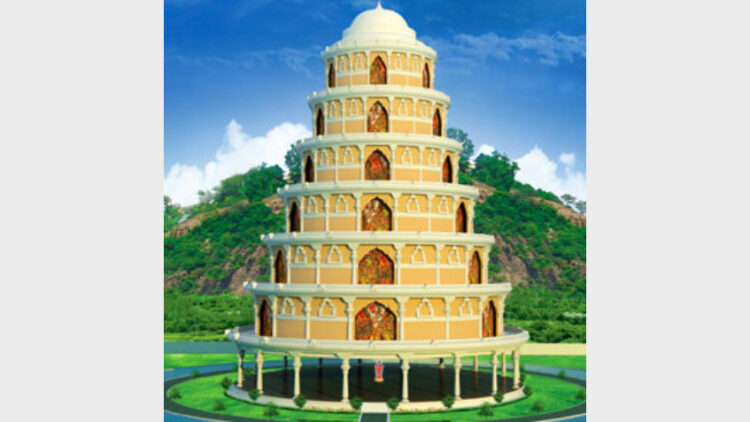 അന്താരാഷ്‌ട്ര ശ്രീകൃഷ്ണ കേന്ദ്രത്തിന്റെ ഇലിൃേല ീള അേേൃമരശേീി അഥവാ മുഖ്യ ആകര്‍ഷണബിന്ദു അത് നടുനായകമായി വൃത്താകൃതിയില്‍ ഭഗവദ്ഗീതയിലെ 18 അദ്ധ്യായങ്ങളെ അനുസ്മരിപ്പിക്കുന്ന 18 നെടുംതൂണുകളില്‍ ഉയര്‍ന്ന് നില്‍ക്കുന്ന ഏഴ്  നിലയുള്ള ശ്രീകൃഷ്ണക്ഷേത്രം. ഏറ്റവും താഴത്തെ നിലയില്‍ അഞ്ജനശിലയില്‍ തീര്‍ത്ത ശ്രീകൃഷ്ണവിഗ്രഹം. ഒരു കൈയില്‍ വെണ്ണ നിറഞ്ഞ കുടവും മറ്റേ കൈകൊണ്ട് വെണ്ണ പ്രസാദമായി ഭക്തര്‍ക്ക് നല്‍കുന്ന രീതിയിലായിരിക്കും ശ്രീകൃഷ്ണ ശില്‍പ്പം. ഒന്നാം നില മുതല്‍ മുകളിലത്തെ നില വരെ ക്ഷേത്ര ഉള്‍ഭിത്തിയില്‍ ഭാഗവതത്തില്‍ നമ്മള്‍ വായിച്ച് രസിച്ചിട്ടുള്ള ശ്രീകൃഷ്ണകഥകള്‍ ചുമര്‍ചിത്രമായി ആലേഖനം ചെയ്തിട്ടുണ്ടാകും. പുറം ഭിത്തിയില്‍ താഴെപ്പറയുന്ന രീതിയില്‍ ശില്‍പ്പ നിര്‍മ്മാണവും ഉണ്ടാകുന്നതാണ്.