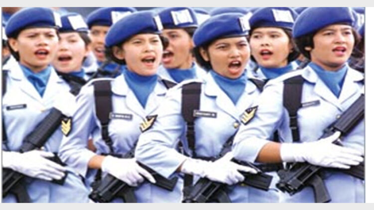 ഇന്തോനേഷ്യയില് വനിതകളെ സൈന്യത്തിലേക്കുംനാഷണല്പൊലീസിലേക്കും നിയമിക്കണമെന്നത് നിര്ബന്ധമാണ്. പതിനെട്ടിനും ഇരുപതിനും ഇടയില് പ്രായമുള്ളവരായിരിക്കും സൈന്യത്തില് ചേരാനെത്തുന്നവരില് ഏറെയും.