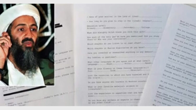 വാഷിങ്ടണ്: ഭീകര സംഘടനയായ അല്-ക്വയ്ദയിലേക്ക് പുതിയ ഭീകരരെ തെരഞ്ഞെടുക്കുന്നതിനായുള്ള അപേക്ഷയിലെ ചോദ്യങ്ങളില് ചിലത് അമേരിക്കന് രഹസ്യാന്വേഷണ വിഭാഗം ഉദ്യോഗസ്ഥര് പുറത്തു വിട്ടു. 2011ല് ഒസാമ ബിന് ലാദനെ വധിച്ച അബോട്ടാബാദില് നിന്നും ലഭിച്ച ജോലി അപേക്ഷ ഫാറത്തിലാണ് ഈ ചോദ്യങ്ങള് കണ്ടെത്തിയത്.