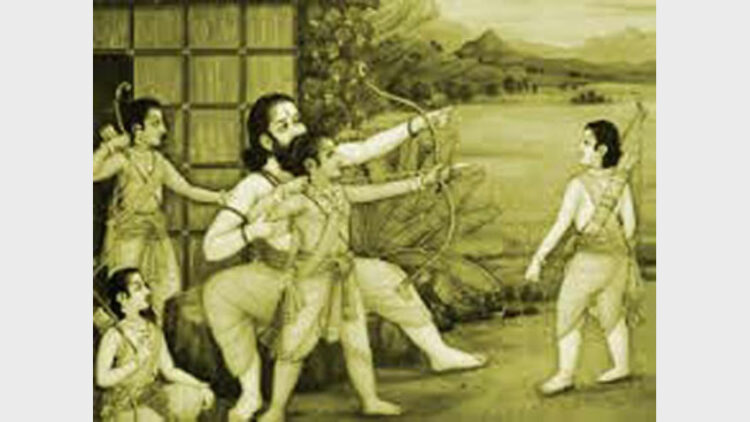 രാമന് കുതിരപ്പുറത്തു കയറി കാട്ടില് നായാട്ടിനു പോകുമ്പോള് ലക്ഷ്മണന് വില്ലെടുത്ത് പിന്നാലെ പോയിരുന്നു. ലക്ഷ്മണന്റെ അനുജനായ ശത്രുഘ്നന് ഭരതന് പ്രാണനെപോലെ പ്രിയപ്പെട്ടവനും എന്നും സന്തോഷം ജനിപ്പിക്കുന്നവനുമായിരുന്നു.