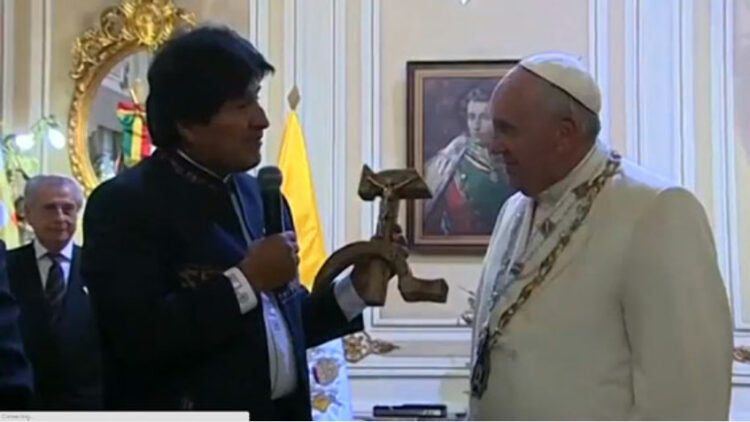 മൊറാലസിന്റെ ലക്ഷ്യം തികച്ചും രാഷ്ട്രീയമായിരുന്നു; 2006-ല് അധികാരമേറ്റ മൊറാലിസ് കത്തോലിക്ക വിഭാഗത്തില്നിന്ന് കനത്ത എതിര്പ്പു നേരിടുന്നുണ്ട്. എന്നാല്, സംഭവം രാഷ്ട്രീയമല്ലെന്നും അത് മാര്പ്പാപ്പയോടുള്ള ആദരത്തിന്റെ ഭാഗമാണെന്നും ബൊളീവിയന് വാര്ത്ത വിനിമയ മന്ത്രി മറിയാനേലാ പാകോ പറഞ്ഞു.