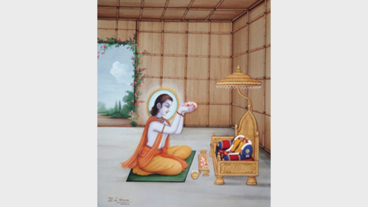 ശ്രീരാമന്റെസ്വാഭാവിക ഉന്നത വ്യക്തിത്വത്തിന്റെ സിന്നിധ്യത്തില് സമര്പ്പണ ഭാവമുളവാകുക(അസൂയയില്ലാത്തവര്ക്ക്) സ്വാഭാവികമാണ്.എന്നാല് അസാന്നിദ്ധ്യത്തിലും അതേഭാവം നിലനിര്ത്താന് വിഷമമാണ്. ഭരതന് സൗമിത്രിക്കും മീതെയാണ് സഹോദരസ്നേഹത്തിലെന്നാണ് ഭരദ്വാജ ഋഷി പറയുന്നത്.