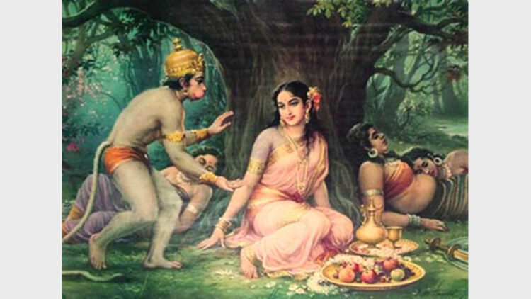 സീതക്കരികില്, അശോകവനത്തിലെത്തി ഹനൂമാന് രാമസന്ദേശമറിയിച്ചു, പക്ഷേ, സീതയുടെ മുഖത്ത് വലിയ ഭാവമാറ്റമൊന്നും കണ്ടില്ല. ഇതേവരെ സഹിച്ചു പോന്ന ദു:ഖങ്ങളോര്ത്തിട്ടോ, വരാനിരിക്കുന്ന സന്തോഷങ്ങളോര്ത്തിട്ടോ എന്തോ, സീത ഒന്നും ഉരിയാടിയുമില്ല.