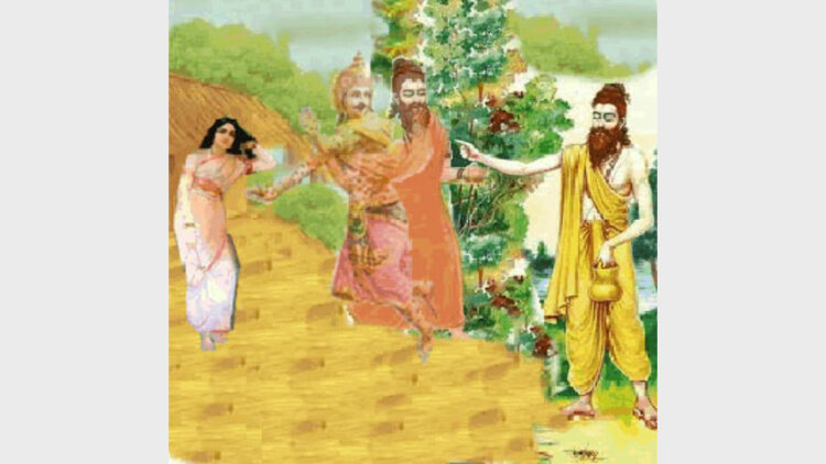 ഗമിഷ്യാമി യഥാഗതം” (നല്ലഅരക്കെട്ടുള്ളവളേ ഞാന് അതീവ സന്തുഷ്ടനായിരിക്കുന്നു ഇതാപോവുകയായി) എന്നു പറഞ്ഞു മടിച്ചു മടിച്ചും തിരിഞ്ഞുനോക്കിയുമാണ് ഇന്ദ്രല് കുടിലില്നിന്ന് പുറത്തിറങ്ങുന്നത്. പക്ഷേ, തൊട്ടുമുന്നില് ഗൗതമ മഹര്ഷി എത്തിക്കഴിഞ്ഞു. കോപാന്ധനായ അദ്ദേഹം ഇന്ദ്രനെ ശപിക്കുന്നത് ഇങ്ങനെ.
