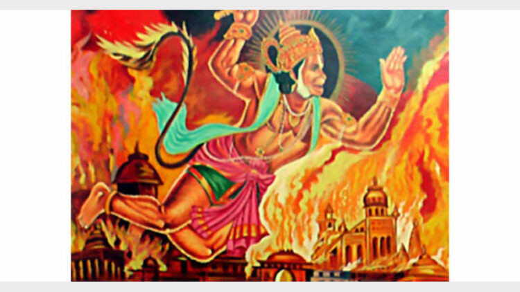 രണ്ടുപേരും എതിരിടുമ്പോള് എല്ലാവിധത്തിലും കുടുങ്ങിയയാളാണെന്നുതോന്നിച്ച ഹനുമാന് അവസാനം വിജയിയായി അഭിമാനപൂര്വ്വം ലങ്കയെ ചുട്ടു നശിപ്പിക്കുന്നു.