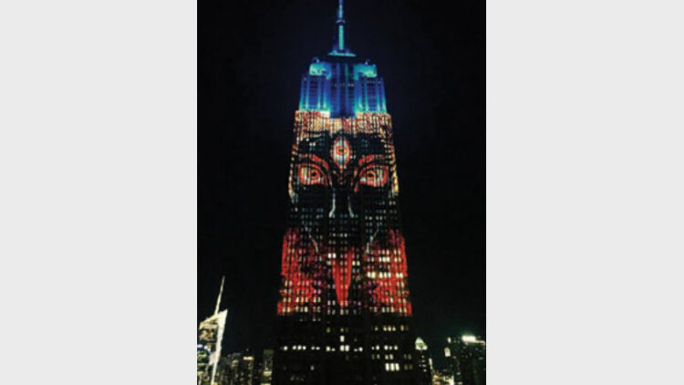 ന്യൂയോര്ക്ക് : കാളീ ദേവിയുടെ ചിത്രം ന്യൂയോര്ക്കിലെ പ്രസിദ്ധമായി എംപയര് സ്റ്റേറ്റ് കെട്ടിടത്തില് അവതരിപ്പിച്ചു. രാജ്യത്തെ വായു മലിനീകരണം വര്ധിച്ചു വരുന്നത് സംബന്ധിച്ച് ജനങ്ങളെ ബോധവാന്മാരാക്കുന്നതിനു വേണ്ടിയായിരുന്നു പ്രദര്ശനം. കലാകാരനും സിനാമാ പ്രവര്ത്തകനുമായ ആന്ഡ്ര്യൂ ജോണ്സാണ് കാളീ ചിത്രത്തിന് രൂപം നല്കിയത്.