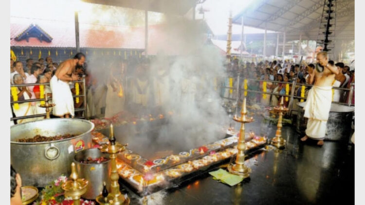 മഹാഗണേശമന്ത്രത്തോടെ മേല്ശാന്തി സുബ്രഹ്മണ്യന്പോറ്റി, കീഴ്ശാന്തി മോഹനന്പോറ്റി എന്നിവരുടെ കാര്മ്മികത്വത്തില് ബ്രാഹ്മണേശ്രഷ്ഠര് യജ്ഞദ്രവ്യങ്ങള് ഒന്നൊന്നായി ഹോമകുണ്ഡത്തില് സമര്പ്പിച്ചു. ഇതോടെ യജ്ഞധൂപത്താലും മഹാഗണേശമന്ത്രത്താലും അന്തരീക്ഷം ഭക്തിസാന്ദ്രമായി. യജ്ഞം കണ്ട് തൊഴാനും ഹോമകുണ്ഡത്തെ വലംവയ്ക്കാനും വന് തിരക്കാണ് അനുഭവപ്പെട്ടത്.