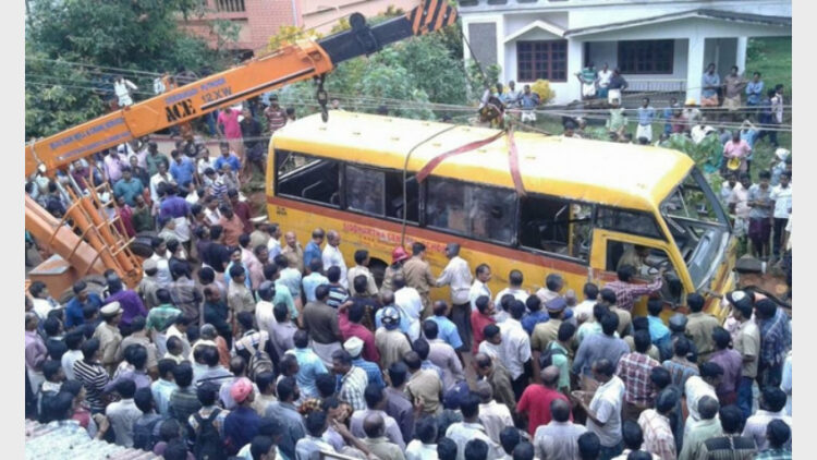പുത്തൂര് സിദ്ധാര്ത്ഥ സെന്ട്രല് സ്കൂള് ബസാണ് അപകടത്തില്പ്പെട്ടത്.