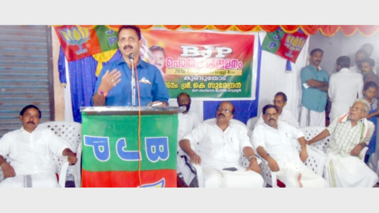 പൊതുയോഗത്തില്‍ ബിജെപി സംസ്ഥാന ജനറല്‍ സെകട്ടറി കെ. സുരേന്ദ്രന്‍ സംസാരിക്കുന്നു