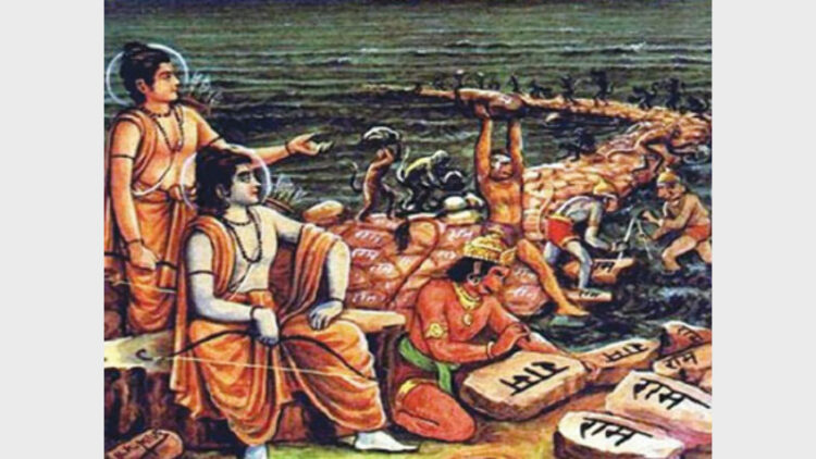 സമുദ്രതീരത്ത് ദര്‍ഭാസനത്തില്‍ ഉപവിഷ്ഠനായ രാമന്‍ സമുദ്രത്തെ തൊഴുതുകൊണ്ട് പറഞ്ഞു.