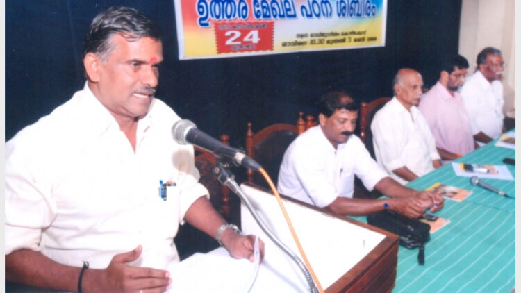 കേരള തയ്യല് മസ്ദൂര് ഫെഡറേഷന് ഉത്തരമേഖല പഠനശിബിരം ബിഎംഎസ് സംസ്ഥാന വൈസ് പ്രസിഡന്റ് വി. രാധാകൃഷ്ണന് ഉദ്ഘാടനം ചെയ്യുന്നു