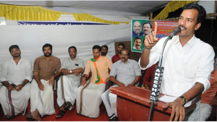 യുവമോര്‍ച്ച സംഘടിപ്പിച്ച ജില്ലാ സൈക്കിള്‍ പ്രചാരണ ജാഥയുടെ സമാപനപരിപാടി