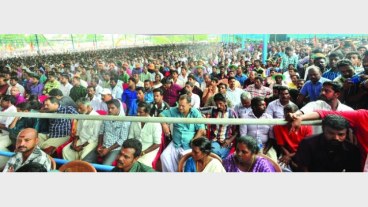 കൊല്ലം: നവോത്ഥാന നായകന്മാരുടെ സ്മരണ നിലനില്ക്കുന്ന കൊല്ലത്തിന്റെ മണ്ണില് പുതിയൊരു രാഷ്ട്രീയ നവോത്ഥാനത്തിന് തുടക്കം കുറിച്ച് ജനസാഗരം. ബിജെപി ജില്ലാഘടകം സംഘടിപ്പിച്ച നവോത്ഥാനസംഗമം ജനലക്ഷങ്ങളുടെ ആവേശത്തില് പീരങ്കിമൈതാനിയില് നടന്നു. കടുത്ത ചൂടിനെ പോലും വകവെയ്ക്കാതെയാണ് പ്രവര്ത്തകര് പരിപാടിയിലേക്ക് ഒഴുകിയെത്തിയത്. വാദ്യാഘോഷത്തിന്റെ അകമ്പടിയോടെ ചെറുപ്രകടനങ്ങളായാണ് പ്രവര്ത്തകര് പരിപാടി സ്ഥലത്ത് എത്തിയത്. നഗരം മുഴുവന് ഭാരത് മാതാ കീ ജയ് വിളികളോടെയുള്ള പ്രവര്ത്തകപ്രവാഹം പരിപാടി തുടങ്ങി മണിക്കൂറുകള് പിന്നിട്ടപ്പോഴും നിലച്ചില്ല. പരിപാടി തുടങ്ങുന്നതിന് മണിക്കുറുകള്ക്ക് മുമ്പ് പന്തലിലൊരുക്കിയിരുന്ന കസേരകള് പ്രവര്ത്തകാരാല് നിറഞ്ഞിരുന്നു. കൊല്ലം, കരുനാഗപ്പള്ളി, ചാത്തന്നൂര്, ഇരവിപുരം, ചടയമംഗലം, കുന്നത്തൂര്, കുണ്ടറ, പത്തനാപുരം, കൊട്ടാരക്കര, പുനലൂര് എന്നീ മണ്ഡലങ്ങളില് നിന്നാണ് പ്രവര്ത്തകര് എത്തിയത്.