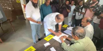 പോളിങ് ബൂത്തിൽ കെ.സുധാകരന്റെയും സഹായിയുടെയും ഗുരുതര ചട്ടലംഘനം; ദൃശ്യങ്ങൾ സഹിതം പരാതി നൽകി യുവമോർച്ച