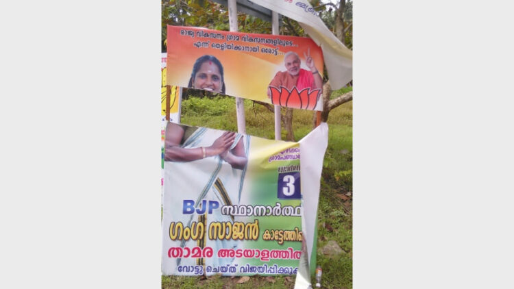 കൊച്ചി: കളമശ്ശേരി നഗരസഭയിലെ തേവയ്ക്കല് വാര്ഡില് മത്സരിക്കുന്ന ബിജെപി സ്ഥാനാര്ത്ഥി വിധു തേവയ്ക്കലിന്റെ പ്രചാരണ ബോര്ഡുകള് വ്യാപകമായി നശിപ്പിക്കപ്പെട്ടു. കൂടാതെ ചുവരെഴുത്തുകള് വികൃതമാക്കുകയും അസഭ്യവാക്കുകള് എഴുതിയും സ്ഥാനാര്ത്ഥിയെ വ്യക്തിഹത്യ നടത്തുന്നു ചിലയിടങ്ങളില്നിന്ന് ബോര്ഡുകള് എടുത്തുകൊണ്ടുപോവുകയും ചെയ്തിട്ടുണ്ട്. നടപടി സ്വീകരിക്കണമെന്നാവശ്യപ്പെട്ട് സ്ഥാനാര്ത്ഥി പോലീസില് പരാതി നല്കിയിട്ടുണ്ട്.