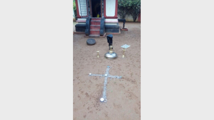 കൊച്ചി: ക്ഷേത്ര ശ്രീകോവില് കുത്തിപ്പൊളിച്ച് ഭണ്ഡാരങ്ങള് തകര്ത്ത് ശ്രീകോവിലിന് മുന്നില് കുരിശ് വരച്ച് പ്രദേശത്ത് സംഘര്ഷത്തിന് ആസൂത്രിത നീക്കം. കല്ലൂര്ക്കാട് പെരിമാകണ്ടം വെണ്ണുള്ളിക്കാവ് കുടുംബക്ഷേത്രത്തിലാണ് സംഭവം. നൂറ് ഏക്കര് സ്ഥലത്തിന് നടുവിലാണ് ക്ഷേത്രം സ്ഥിതിചെയ്യുന്നത്. കഴിഞ്ഞ ദിവസം രാത്രി ക്ഷേത്രത്തിന്റെ ശ്രീകോവിലിന്റെ താഴ് അറുത്ത് മാറ്റുകയും ഭണ്ഡാരങ്ങള് എല്ലാം കുത്തിപ്പൊളിക്കുകയും ചെയ്തു. തിടപ്പള്ളിയുടെ താഴും അറുത്തെടുത്തു. കൂടാതെ ശ്രീകോവിലിന് മുന്നില് കമ്പിപ്പാരക്ക് കുരിശ് വരക്കുകയും അറുത്തെടുത്ത താഴുകള് കുരിശിന്റെ ഓരോ അറ്റത്തും നടുവിലായും വക്കുകയും ചെയ്തു. ഇതിനുമുമ്പും ഈ ക്ഷേത്രത്തിനെതിരെ ആക്രമണം നടന്നിട്ടുണ്ട്. തീരെ ജനവാസം കുറഞ്ഞ പ്രദേശത്താണ് ഈ ക്ഷേത്രം സ്ഥിതിചെയ്യുന്നത്. തൊടുപുഴ പോലീസിന്റെയും കല്ലൂര്ക്കാട് പോലീസിന്റെയും അതിര്ത്തിയിലാണ് ക്ഷേത്രം.