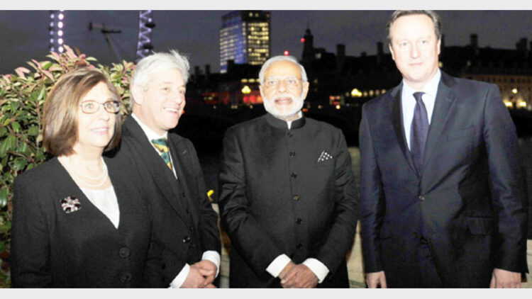 ആദ്യം ബ്രിട്ടനിലെ പഞ്ചാബി സമൂഹവുമായി ചര്ച്ച നടത്തിയ മോദി പിന്നീടാണ് പാര്ലമെന്റില് പ്രസംഗിച്ചത്. ബ്രിട്ടനിലെ വ്യവസായ ബിസിനസ് പ്രമുഖരുമായി കൂടിക്കാഴ്ച നടത്തിയ മോദി പാര്ലമെന്റ് സ്ട്രീറ്റിലെ ഗാന്ധിജിയുടെ പ്രതിമയെ വണങ്ങി. പ്രധാനമന്ത്രി ഡേവിഡ് കാമറൂണുമായി ഉഭയകക്ഷി ചര്ച്ചയും നടത്തി. യുഎന് രക്ഷാ സമതിയില് സ്ഥിരാംഗത്വമെന്ന ഭാരതത്തിന്റെ ആവശ്യത്തെ പിന്തുണച്ച ബ്രിട്ടന് ഭാരതത്തില് 900 കോടി പൗണ്ട് നിക്ഷേപിക്കുമെന്നും വ്യക്തമാക്കി. സിവില് ആവശ്യങ്ങള്ക്ക് ആണവോര്ജ്ജം ഉപയോഗിക്കാന് സഹകരിക്കാനുള്ള ആണവ കരാറില് ഇരുരാജ്യങ്ങളും ഒപ്പിട്ടു.