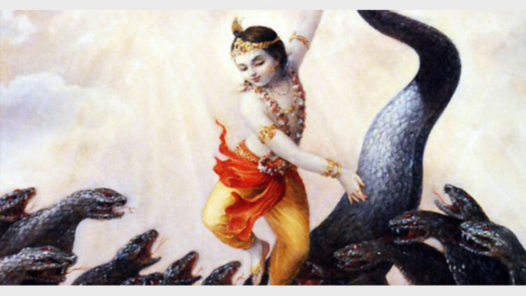 എന്നാല് കാളീന്ദിനദിയെ വിഷമയമാക്കിത്തീര്ത്തതിന് ഭഗവാന് കാളിയനേയും കുടുംബത്തേയും അവിടെനിന്നും കെട്ടുകെട്ടിച്ചു. ഇതില് സര്വ്വചരാചരങ്ങളും സന്തുഷ്ടരായി ഭഗവാന്റെ പാദാരവിന്ദങ്ങള് പശുക്കള് നക്കിക്കൊണ്ടിരുന്നു. ഗോപന്മാര് ആലിംഗനം ചെയ്ത് സ്നേഹം പ്രകടിപ്പിച്ചു. നന്ദഗോപന് എല്ലാവര്ക്കും നിരവധി ദാനങ്ങള് ചെയ്തു. യശോദയാകട്ടേ കൃഷ്ണനെ വാരിപ്പുണര്ന്ന് മടിയിലിരുത്തി.