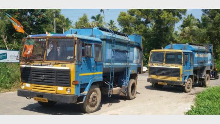 ബൈപ്പാസിലെ വേള്ഡ് മാര്ക്കറ്റില് നിക്ഷേപിക്കാനായി മാലിന്യങ്ങളും വഹിച്ചെത്തിയ നഗരസഭാ വാഹനങ്ങള് ബിജെപി പ്രവര്ത്തകര് തടഞ്ഞിട്ടിരിക്കുന്നു
