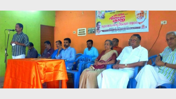 മണ്ഡലം പ്രസിഡന്റ് അഡ്വ.വിനോദ് അദ്ധ്യക്ഷത വഹിച്ചു. ബിജെപി ജില്ലാ വൈസ് പ്രസിഡന്റ് എസ്.ദിനേശ്കുമാര്, ജില്ലാ സെക്രട്ടറി സുജിത്ത് സുകുമാരന്, മണ്ഡലം ജനറല് സെക്രട്ടറി സാംരാജ്, ആര്എസ്എസ് മഹാനഗര് സംഘചാലക് എ.ഗോപാലകൃഷ്ണന്, ശ്രീകേഷ്പൈ, ബിഎംഎസ് ജില്ലാ ജോയിന്റ് സെക്രട്ടറി പി.ജയപ്രകാശ്, സുദര്ശനന്, ഡോ.ശശിധരന്, പ്രൊഫ.ശാന്തകുമാരി എന്നിവര് സംസാരിച്ചു.