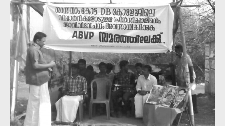 വിദ്യാര്‍ത്ഥിയെ ജാതിപേര് വിളിച്ച പ്രിന്‍സിപ്പാളിനെതിരെ എബിവിപി സമരരംഗത്ത്