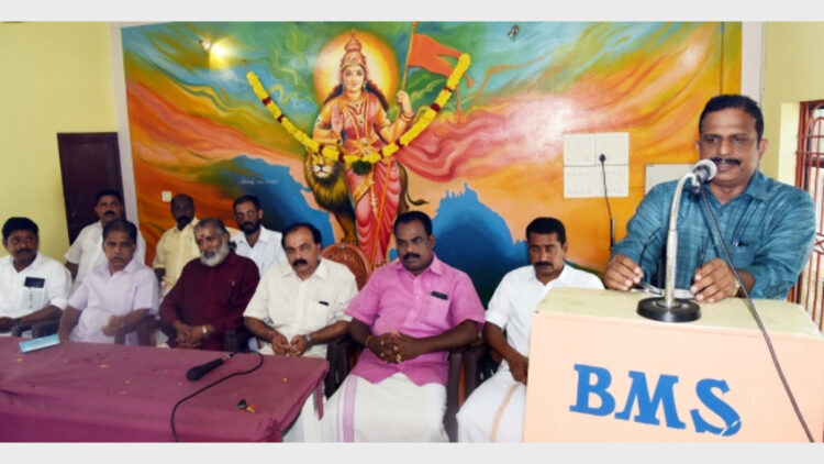 ആവശ്യമാണ്. ഈ ചിന്താധാരയില്‍ അടിയുറച്ചാണ് ബിഎംഎസ് പ്രവര്‍ത്തിക്കുന്നത്. പ്രവൃത്തിയിലൂടെ ഈചിന്താധാര കാട്ടിക്കൊടുക്കുകയാണ് വേണ്ടത്. ഇടതുവലതു തൊഴിലാളി സംഘടനകള്‍ സമൂഹത്തെ തിന്മയിലേക്ക് നയിക്കുന്നവയാണ്. ഇതില്‍നിന്നും വ്യത്യസ്ഥമായി പ്രവര്‍ത്തിച്ച് നാം മാതൃക കാട്ടണം. രാഷ്‌ട്രീയ ലക്ഷ്യങ്ങള്‍ക്കുവേണ്ടിയാണ് ചില ശക്തികള്‍ ദേവസ്വം ബോര്‍ഡിനെ ഉപയോഗിക്കുന്നത്. ഈ പ്രതിസന്ധി തരണം ചെയ്യുകയാണ് ദേവസ്വം എംപ്ലോയീസ് സംഘിന്റെ ലക്ഷ്യം. അതിനായി മുന്നോട്ടുപോകണമെന്നും അദ്ദേഹം പറഞ്ഞു.