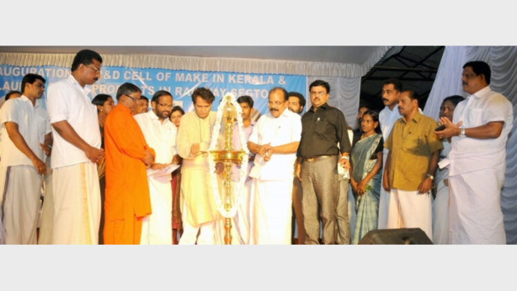 ശാന്തിഗിരി ആശ്രമത്തില് നടന്ന ചടങ്ങില് കേന്ദ്ര റെയില് മന്ത്രി സുരേഷ് പ്രഭു മെയ്ക് ഇന് കേരള റിസേര്ച്ച് ആന്ഡ് ഡവലപ്മെന്റ് സെല് ഉദ്ഘാടന കര്മ്മം