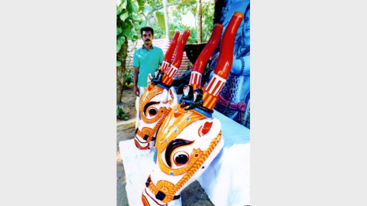 സിമന്റില്‍ തീര്‍ത്ത നന്ദീകേശ രൂപവുമായി മണിയന്‍