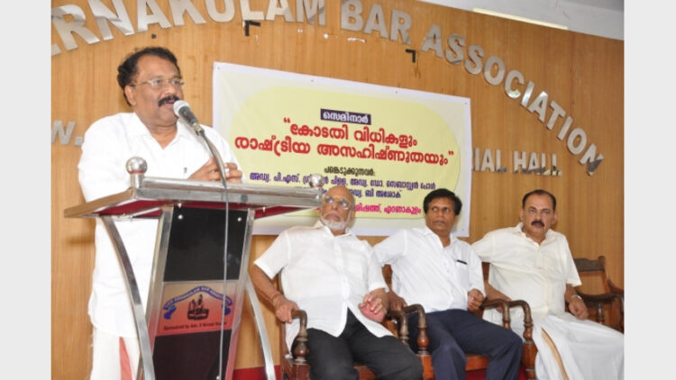കൊച്ചി: കേരളത്തില് നിരന്തരമായി സിപിഎമ്മിനും നേതാക്കന്മാര്ക്കുമെതിരെ വരുന്ന കോടതിവിധികള്ക്കെതിരെ പ്രതികരിക്കുന്നതും പ്രക്ഷോഭം നയിക്കുന്നതും ജുഡീഷ്യറിയിലും ജഡ്ജിമാര്ക്കിടയിലും ഭയമുണ്ടാക്കുന്ന തരത്തില് വളര്ന്നിരിക്കുന്നുവെന്ന് ബിജെപി നേതാവ് അഡ്വ. പി.എസ്. ശ്രീധരന്പിള്ള പറഞ്ഞു. അഭിഭാഷകപരിഷത്തിന്റെ ജില്ലാ സമ്മേളനത്തിനോടനുബന്ധിച്ച് ബാര് അസോസിയേഷന് ഹാളില് സംഘടിപ്പിച്ച സെമിനാറില് സംസാരിക്കുകയായിരുന്നു അദ്ദേഹം. അസഹിഷ്ണുത എന്നത് തീര്ത്തും അവഗണിക്കപ്പെടേണ്ട വികാരമല്ലെന്നും ചില പ്രത്യേക അവസരങ്ങളില് കോടതിവിധികളോടാണെങ്കിലും പ്രകടിപ്പിക്കുന്നത് തെറ്റല്ലെന്നും സെമിനാറില് സംസാരിച്ച അഡ്വ. സെബാസ്റ്റിയന് പോള് പറഞ്ഞു. ഇന്ദിരാഗാന്ധി തനിക്കെതിരെ വിധി പറഞ്ഞ 13 അംഗ ബെഞ്ചിനെ അനുകൂലിച്ച ജഡ്ജിമാര്ക്ക് പിന്നീട് ഉന്നതപദവി നല്കാതിരുന്നത് കോടതിയോടുള്ള കോണ്ഗ്രസ് പാര്ട്ടിയുടെ ഏറ്റവും വലിയ അസഹിഷ്ണുതയായിമാറി. അടുത്തകാലത്ത് വിജിലന്സ് ജഡ്ജിക്കെതിരെ മന്ത്രി കെ.സി. ജോസഫ് നടത്തിയ ‘നീലക്കുറുക്കന്’ പ്രയോഗവും യൂത്ത് കോണ്ഗ്രസിന്റെ ശവമഞ്ചയാത്രയുമെല്ലാം കോണ്ഗ്രസിന്റെ സമീപകാലത്തെ കോടതിവിധികളോടുള്ള അസഹിഷ്ണുതയെ തുറന്നുകാണിക്കുന്നുവെന്ന് സെബാസ്റ്റിയന് പോള് പറഞ്ഞു. സെമിനാറിന്റെ ഉദ്ഘാടനം അഡ്വ. ഗോവിന്ദ് കെ. ഭരതന് നിര്വഹിച്ചു. അഭിഭാഷക പരിഷത്ത് ജില്ലാ പ്രസിഡന്റ് അഡ്വ. പി.എല്. ബാബു അധ്യക്ഷത വഹിച്ചു. അഡ്വ. കെ.ബി. സാജന് സ്വാഗതവും അഡ്വ. എം.എന്. ദേവരാജ് നന്ദിയും പറഞ്ഞു.