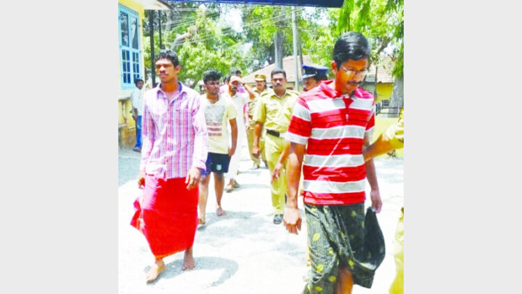കാട്ടായിക്കോണത്ത് ബിജെപി പ്രകടനത്തിനു നേരെ അക്രമം നടത്തിയ സിപിഎം ക്രിമിനലുകളെ ആറ്റിങ്ങല് സബ് ജയിലിലേക്ക് കൊണ്ടുവന്നപ്പോള്