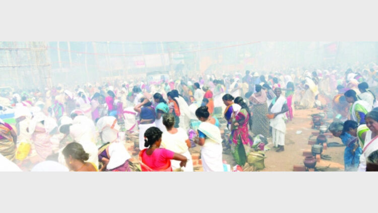 പേട്ട: ഭക്തിയുടെ നിറവില് കരിക്കകത്തമ്മയ്ക്ക് ലക്ഷക്കണക്കിന് സ്ത്രീ ഭക്തര് പൊങ്കാലയര്പ്പിച്ചു. പഞ്ച മധുരങ്ങളും ശര്ക്കരയും തേങ്ങയും സംയോജിപ്പിച്ച് ഒരുക്കിയ മധുരപായസങ്ങളും, മണ്ടപ്പുറ്റും തെരളിയും ഒക്കെ ഭക്തരുടെ ഇഷ്ടാനുസരണം അമ്മയ്ക്കായി സമര്പ്പിച്ചു.