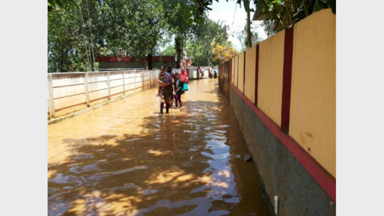 കഴിഞ്ഞദിവസം പെയ്ത ശക്തമായ മഴയിലാണ് റോഡില് വെള്ളം കയറിയത്. മുന്പ് വെള്ളം ഒഴുകിപോകുന്നതിന് സൗകര്യം ഉണ്ടായിരുന്നു. എന്നാല് പഞ്ചായത്തിന്റെ നവീകരണ പദ്ധതികളുടെ ഭാഗമായി റോഡിന് ഇരുവശവും കോണ്ക്രീറ്റ് ചെയ്തോടെ റോഡില് വെള്ളക്കെട്ട് രൂപപ്പെടുകയായിരുന്നു.