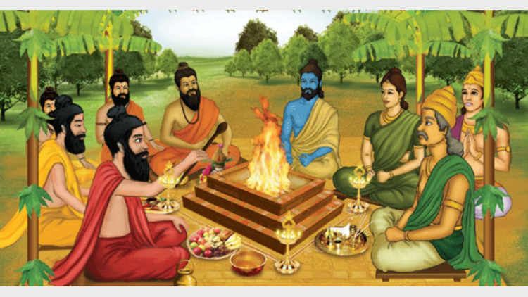 യാഗത്തില് യജമാനന് ചണ്ഡാളനും, അദ്ധ്വര്യു (യാഗത്തില് യജുര്വേദം ചെയ്യുന്ന ഋത്വിക്) ക്ഷത്രിയനും ആയതിന്നാല് ദേവന്മാരും ഋഷിമാരും എങ്ങനെ യാഗത്തില് പങ്കാളികളാവും എന്ന്പറഞ്ഞ് അവരെയെല്ലാം കണക്കിന് ആക്ഷേപിച്ചു. വിശ്വാമിത്രന് ഇതുകേട്ട് അവരെ മാംസഭുക്കുകളായിത്തീരട്ടേ എന്നു ശപിച്ചു. എന്നാല് വിശ്വാമിത്രപക്ഷക്കാരായ ചില മുനിമാരല്ലാതെ ആരുംതന്നെ യാഗത്തില് പങ്കെടുത്തില്ല. ദേവന്മാരാരും തിരിഞ്ഞു നോക്കിയതേയില്ല.