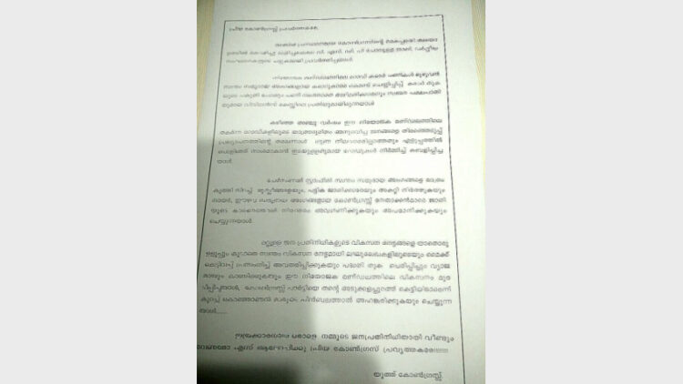 യൂത്ത് കോണ്ഗ്രസുകാര് വിതരണം ചെയ്ത നോട്ടീസ്
