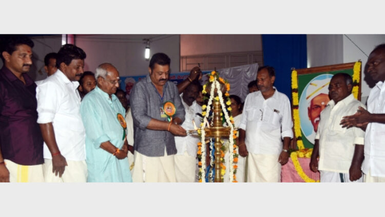 തിരുവനന്തപുരത്ത് കെപിഎംഎസിന്റെ 45-ാമത് ജില്ലാ വാര്‍ഷികം സുരേഷ് ഗോപി ഉദ്ഘാടനം ചെയ്യുന്നു. ഒ. രാജഗോപാല്‍ സമീപം