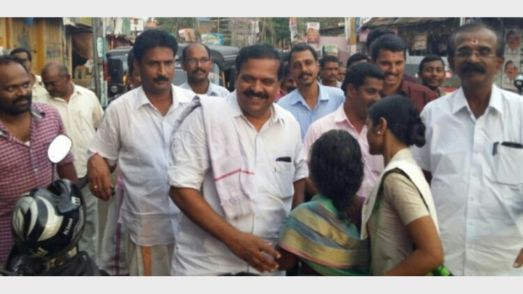 ബിജെപി സ്ഥാനാര്ഥി പി.കെ. കൃഷ്ണദാസ് മണ്ഡലത്തിലെ പ്രചാരണത്തിനിടെ