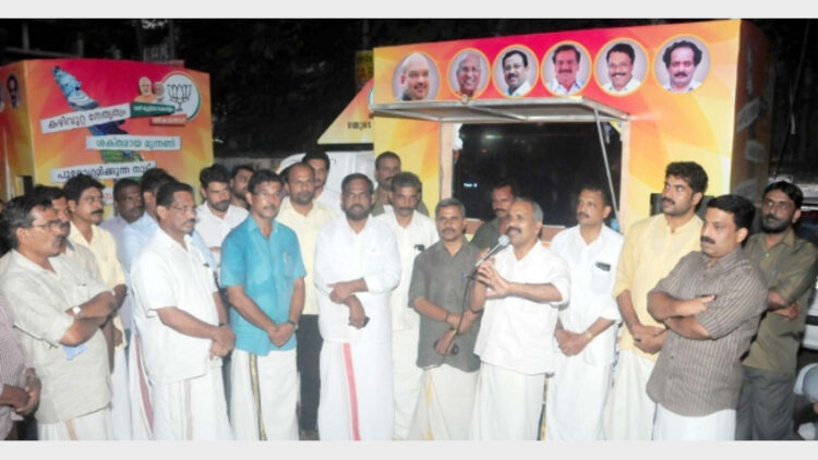 കോഴിക്കോട്: നരേന്ദ്രമോദി സര്ക്കാറിന്റെ ഭരണനേട്ടങ്ങള് ജനങ്ങളില് എത്തിക്കാന് ബിജെപി യുടെ നേതൃത്വത്തില് വീഡിയോ വാനുകള്പര്യടനം തുടങ്ങി. ഇന്നലെ കിഡ്സണ് കോര്ണറില് ജില്ലാതല ഉദ്ഘാടനം ബിജെപി ജില്ലാപ്രസിഡന്റ് ടി.പി. ജയചന്ദ്രന്മാസ്റ്റര് നിര്വ്വഹിച്ചു. കേന്ദ്രസര്ക്കാറിന്റെ നേതൃത്വത്തില് നടക്കുന്ന വിപ്ലവകരമായ വികസന മുന്നേറ്റങ്ങളും ബിജെപി ഭരിക്കുന്ന സംസ്ഥാനങ്ങളിലെ വികസന നേട്ടങ്ങളും കേരളത്തിന്റെ വികസന മുരടിപ്പും ജനങ്ങളില് എത്തിക്കുകയാണ് ഈ പര്യടനത്തിന്റെ ലക്ഷ്യമെന്ന് അദ്ദേഹം പറഞ്ഞു. വികസന മുന്നേറ്റത്തിന്റെ ദേശീയപാതയില് നിന്ന് കേരളം വേറിട്ടുനില്ക്കുകയാണ്. ഇതിന് മാറ്റമുണ്ടാകുന്ന തെരഞ്ഞെടുപ്പായി നിയമസഭാ തെരഞ്ഞെടു പ്പ് മാറും. അദ്ദേഹം പറഞ്ഞു. നോര്ത്ത് മണ് ഡലം സ്ഥാനാര്ത്ഥി കെ.പി. ശ്രീ ശന്, സൗത്ത് മണ് ഡലം സ്ഥാനാര്ത്ഥി കുറ്റിയില് സതീശന്, ബിജെപി ജില്ലാ ജനറല് സെക്രട്ടറി പി. ജിജേന്ദ്രന്, ട്രഷറര് ടി.വി. ഉണ്ണികൃഷ്ണന് എന്നിവര് പങ്കെടുത്തു.