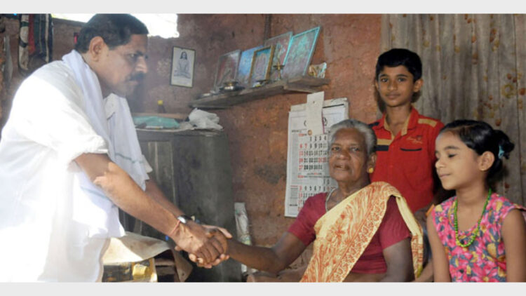മാറ്റമുണ്ടാവണം… കോളനിയിലെ കൂരയില്‍ സ്ഥാനാര്‍ത്ഥി വി. വി. രാജനെത്തിയപ്പോള്‍ മുദിയറ തന്റെ ദുരിതങ്ങള്‍ വിവരിക്കുന്നു