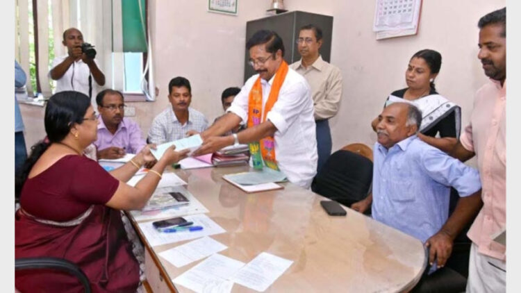 കുണ്ടറ: എന്‍ഡിഎ കുണ്ടറ മണ്ഡലം സ്ഥാനാര്‍ത്ഥി എം.എസ്.ശ്യാംകുമാര്‍ നാമനിര്‍ദ്ദേശ പത്രിക സമര്‍പ്പിച്ചു. കുണ്ടറയില്‍ നിന്നും പ്രകടനവുമായി എത്തി വേലുത്തമ്പി ദളവയുടെയും അയ്യങ്കാളി, ആര്‍.ശങ്കര്‍ എന്നിവരുടെ സ്മൃതികുടീരങ്ങളില്‍ പുഷ്പാര്‍ച്ചനയ്‌ക്കു ശേഷം കളക്‌ട്രേറ്റിലുള്ള വരണാധികാരി മുമ്പാകെ രാവിലെ 11.30ന് നാമനിര്‍ദ്ദേശ പത്രിക സമര്‍പ്പിച്ചു.