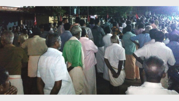 കൊല്ലം-പത്തനംത്തിട്ട ജില്ലകളെ ബന്ധിപ്പിക്കുന്ന പ്രധാനറോഡായ ചക്കുവള്ളി-തെങ്ങമം റോഡാണ് പോലീസ് നോക്കിനില്ക്കെ സിപിഎം പ്രവര്ത്തകര് രണ്ട് മണിക്കൂറോളം ഗതാഗതം തടഞ്ഞത്. പാതയുടെ വശത്തായി സ്റ്റേജ് നിര്മിച്ചശേഷം പ്രവര്ത്തകര്ക്ക് ഇരിക്കാനായി റോഡിന്റെ ഇരുവശവും കസേരകള് നിരത്തി യോഗം ആരംഭിച്ചതോടെ പ്രവര്ത്തകര് റോഡ് അപ്പാടെ കയ്യേറി ഗതാഗതം തടസപ്പെടുത്തി നിരവധി വാഹനങ്ങള് ഇവിടെ കുരുങ്ങി. ശാസ്താംകോട്ട സിഐയുടെയും ശൂരനാട് എസ്ഐയുടെയും നേതൃത്വത്തിലുള്ള പോലീസ് സംഘത്തെ നോക്കുകുത്തിയാക്കി ഡിവൈഎഫ്ഐ പ്രവര്ത്തകര് വഴിതടഞ്ഞ് വാഹനങ്ങള് തിരിച്ചുവിട്ടു. ഗതാഗതക്കുരുക്കില് അകപ്പെട്ടവര് സഹായത്തിനായി പോലീസിനെ വിളിച്ചെങ്കിലും നിസഹകരണമായിരുന്നു ഫലം.