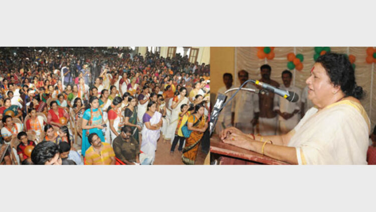 എന്‍ഡിഎ സ്ഥാനാര്‍ത്ഥി സി.കെ. പത്മനാഭന്റെ തെരഞ്ഞെടുപ്പ് പ്രചാരണത്തിന്റെ ഭാഗമായി പുവ്വാട്ടുപറമ്പില്‍ നടന്ന ശക്തിപര്‍വം സ്ത്രീ സംഗമം കവിയൂര്‍ പൊന്നമ്മ ഉദ്ഘാടനം ചെയ്യുന്നു