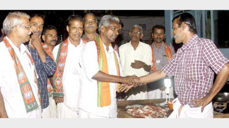എന്ഡിഎ ബാലുശ്ശേരി നിയോജകമണ്ഡലം സ്ഥാനാര്ത്ഥി പി.കെ. സുപ്രന് എകരൂല് അങ്ങാടിയില് പ്രചരണം നടത്തുന്നു.