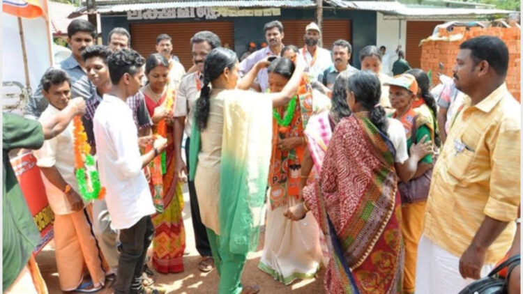 ചെങ്കോട്ടകളില്‍ വരെ സ്ത്രീകളും കുട്ടികളും അടങ്ങുന്ന വലിയ നിര കാവിഷാളുകളുമായി സ്ഥാനാര്‍ത്ഥിയെ സ്വീകരിക്കാന്‍ കാത്തുനില്‍ക്കുന്നുണ്ടായിരുന്നു.