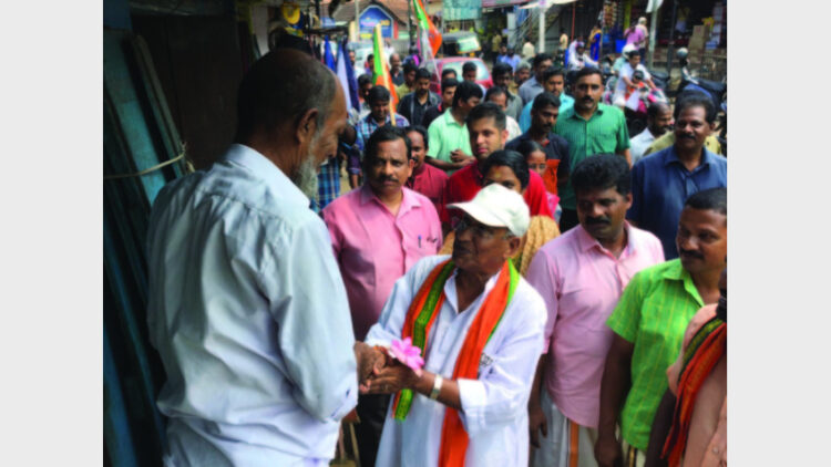 നേമം നിയോജക മണ്ഡലം എന്‍ഡിഎ സ്ഥാനാര്‍ത്ഥി ഒ. രാജഗോപാല്‍ തിരുമലയില്‍ പ്രചാരണം നടത്തിയപ്പോള്‍