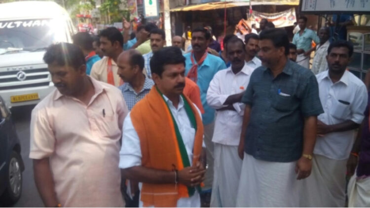 കോവളം നിയോജക മണ്ഡലം എന്‍ഡിഎ സ്ഥാനാര്‍ത്ഥി ടി.എന്‍. സുരേഷ് കൊല്ലംകോണത്ത് പ്രചാരം നടത്തിയപ്പോള്‍