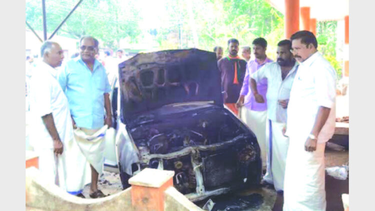 പെരിനാട് ബിജെപി നേതാവിന്റെ കാര്‍ സിപിഎമ്മുകാര്‍ കത്തിച്ചു