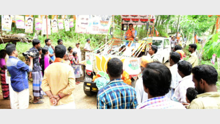 നെടുമങ്ങാട്: നെടുമങ്ങാടിന്റെ വിശ്വാസം നെഞ്ചിലേറ്റി പത്തുനാള്‍ നീണ്ടുനിന്ന ബിജെപി സ്ഥാനാത്ഥി വി.വി. രാജേഷിന്റെ വാഹനപ്രചാരണം അവസാനിച്ചു. ഇന്ന് കൊട്ടികലാശത്തോടെ പ്രചാരണപരിപാടിക്ക് തിരശീലവീഴും. കേരളരാഷ്‌ട്രീയത്തില്‍ ഇടതും വലതും മാത്രമെന്ന കാഴ്ചപ്പാടില്‍ നിന്നും വേറിട്ടൊരുചിന്താഗതി ഇക്കുറി മണ്ഡലത്തെ മാറ്റിമറിക്കും. മുന്‍കാലഭരണം പൊതുജനങ്ങള്‍ക്ക് നേട്ടങ്ങള്‍ ഉണ്ടാക്കിയെന്ന കുപ്രചാരണം വോട്ടര്‍മാര്‍ക്കിടയില്‍ പ്രചരിപ്പിക്കാനുള്ള തന്ത്രമാണ് യുഡിഎഫും എല്‍ഡിഎഫും കാട്ടുന്നത്. എന്നാല്‍ അറുപതുകൊല്ലത്തെ ഭരണം മടുത്ത നെടുമങ്ങാട്ടുകാര്‍ ഒന്നടങ്കം ഭരണമാറ്റത്തിനായി അഗ്രഹിക്കുന്നു.