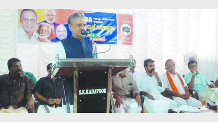 ദൈവത്തിന്റെ സ്വന്തം നാടെന്നറിയപ്പെടുന്ന കേരളത്തിലെ ചെറുപ്പക്കാര്‍ തൊഴില്‍തേടി വിദേശരാജ്യങ്ങളിലേക്ക് പോകുന്ന കാഴ്ച വേദനാജനകമാണ്. കമ്മ്യൂണിസ്റ്റ് പാര്‍ട്ടി ജനാധിപത്യത്തിലല്ല, അക്രമത്തിലാണ് വിശ്വസിക്കുന്നത്. ബിജെപി ഭരിക്കുന്ന സംസ്ഥാനങ്ങളില്‍ വ്യവസായികവും ചെറുപ്പക്കാര്‍ക്ക് തൊഴില്‍ നല്‍കുന്നതുമായ അനവധി വികസന പ്രവര്‍ത്തനങ്ങളാണ് നടക്കുന്നത്. അതു കൊണ്ട് തന്നെ ചെറുപ്പക്കാരും വിദ്യാര്‍ത്ഥികളും ഇന്ന് നരേന്ദ്രമോദിക്കൊപ്പമാണ്. ദുരിതത്തിന്റെ വിലയറിയുന്ന ഒരു പ്രധാനമന്ത്രിയാണ് ഭാരതം ഭരിക്കുന്നതെന്ന് നമുക്ക് അഭിമാനിക്കാമെന്ന് അദ്ദേഹം പറഞ്ഞു. ചടങ്ങില്‍ ബിജെപി നിയോജകമണ്ഡലം പ്രസിഡന്റ് അഡ്വ.വിനോദ് അദ്ധ്യക്ഷത വഹിച്ചു. ബിജെപി ജില്ലാ വൈസ് പ്രസിഡന്റ് അഡ്വ.ജി.ഗോപകുമാര്‍ പരിഭാഷപ്പെടുത്തി. സ്ഥാനാര്‍ത്ഥി പ്രൊഫ.കെ. ശശികുമാര്‍, ആര്‍എസ്എസ് വിഭാഗ് കാര്യകാരി സദസ്യന്‍ വി.മുരളീധരന്‍, ബിജെപി ജില്ലാ സെക്രട്ടറി നെടുമ്പന ഓമനക്കുട്ടന്‍, ബിഡിജെഎസ് ജില്ലാ സെക്രട്ടറി വലിയകാവ് രാജു. ജെഎസ്എസ് രാജന്‍ബാബു വിഭാഗം ജില്ലാപ്രസിഡന്റ് എം.വി.രാജു, പെരുമണ്‍ ഷാജി, പ്രേംലാല്‍ എന്നിവര്‍ സംസാരിച്ചു.
