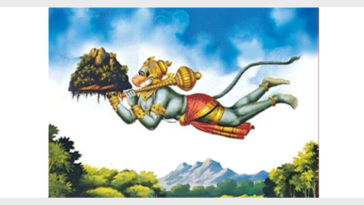 ഹനുമാന്‍ മലയും ഉയര്‍ത്തിപ്പിടിച്ച് യുദ്ധഭൂമിയില്‍ വന്നിറങ്ങി. ഔഷധികളുടെ വാസനയേറ്റതോടെ എല്ലാവരുടെയും വ്യഥയകന്നു. ദിവ്യൗഷധികളായ വിശല്യകരണി അമ്പുകള്‍ കൊണ്ടുള്ള മുറിവുണക്കുന്നതാണ്. ശരീരത്തിലെ ഒടിവുകളും ചതവുകളും മാറ്റുന്നതാണ് സന്ധാനകരിണി. ശരീരകാന്തി തിരിച്ചുനല്‍കുന്നതാണ് സുവര്‍ണകാന്തി. മരിച്ചവരെ ജീവിപ്പിക്കാന്‍ കഴിയുന്നതാണ് മൃതസഞ്ജീവനി.