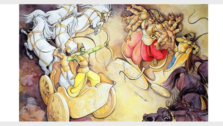 പിന്നെ കടുത്തപോരു നടന്നു. വാനരന്മാരുടെ ആര്‍പ്പുവിളികളും രാക്ഷസന്മാരുടെ നിലവിളിയും രാമന്റെ ഞാണൊലിയും പത്തുദിക്കിലും വ്യാപിച്ചു. രാമന്റെ അസ്ത്രപ്രയോഗത്തില്‍ വന്‍ശിഖിരംപോലുള്ള ലങ്കാനഗരത്തിന്റെ ഗോപുരം തകര്‍ന്നുവീണു. ഓരോ രാക്ഷസസേനാനായകന്മാരായി കൊല്ലപ്പെട്ടു. കമ്പനന്‍ അംഗദന്റെ ഗദാപ്രഹരത്താല്‍ കൊല്ലപ്പെട്ടു. തുടര്‍ന്നെത്തിയ പ്രകമ്പനനും അതേഗതിവന്നു.